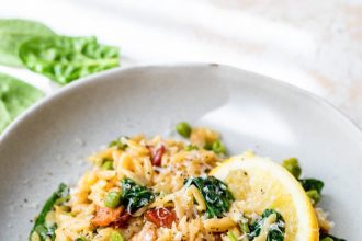 Orzo with Bacon, Leeks, Peas, Spinach and Lemon