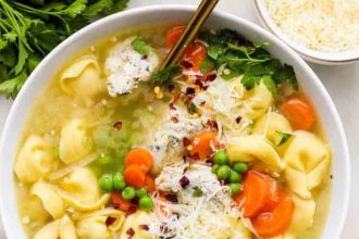 Indulge in a delightful one-pot lemon tortellini soup packed with savory ground…