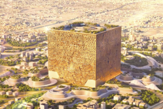 Exterior of the 400m by 400m by 400m structure, the Mukaab, set…