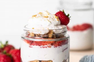 ```html Protein Strawberry Cheesecake Jars - Fit Foodie Finds This single-serve strawberry…